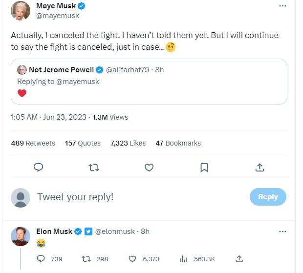 Мать Илона Маска заявила, что отменила запланированный бой своего сына с Марком Цукербергом. Но говорит, что пока им об этом не сказала.