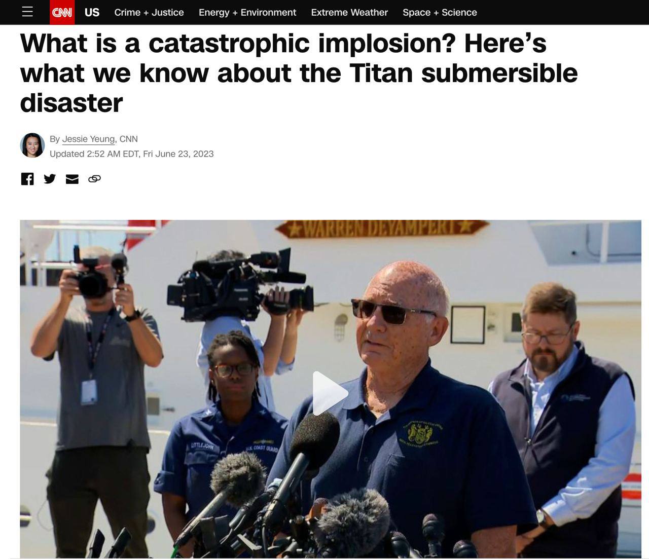 Все пассажиры подводного аппарата "Титан", что пропал без вести при спуске к лайнеру "Титаник", вероятно, погибли мгновенно из-за мощного взрыва под давлением воды.