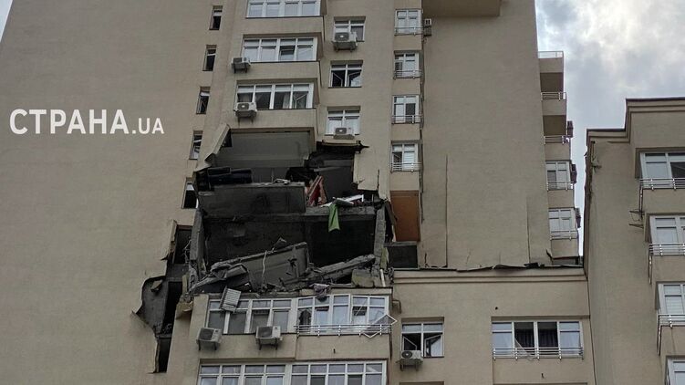 По данным МВД, обломки попали в 25-тиэтажный дом в Соломенском районе. По данным КГГА, частично разрушен 18 этаж, задело также 16-й, 17-й и 19-й этаж здания. Там возник пожар, который сейчас уже потушен.