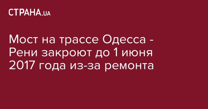 Движение по автомобильному мосту на трассе Одесса – Рени в Одесской области закроют до 1 июня 2017 года в связи с проведением ремонтных работ. Об этом сообщили в пресс-службе Белгород-Днестровской районной государственной администрации, передает УНИАН.