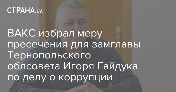 Высший антикоррупционный суд (ВАКС) избрал меру пресечения третьему фигуранту по делу о вымогательстве в Тернопольском облсовете Игорю Гайдуку.