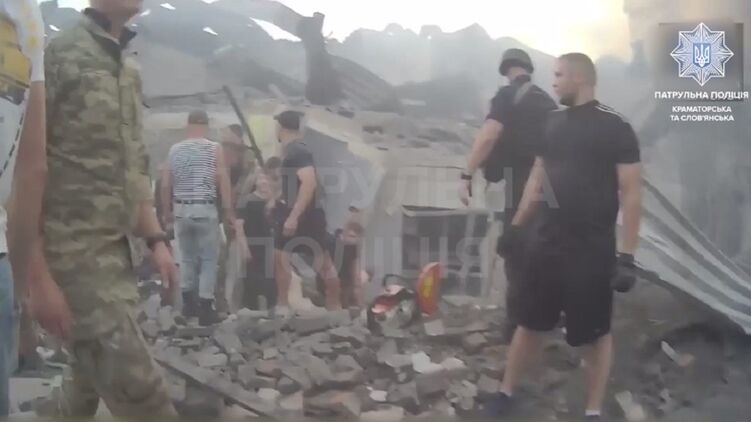 МВД показало кадры первых минут после ракетного удара по Краматорску. Видео с нагрудной камеры полицейских