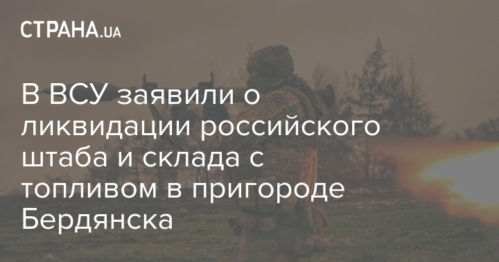 В ВСУ заявили о ликвидации российского штаба и склада с топливом в пригороде Бердянска