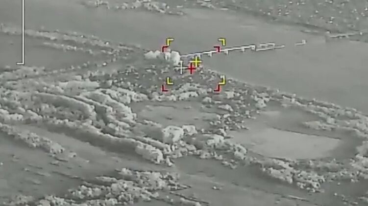 На кадрах виден удар по южной части моста, со стороны левого берега Днепра.