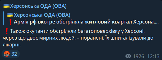 Ранее мы писали, что днем 1 июля российские войска обстреляли жилые кварталы Херсона, что привело к трагическим последствиям - ранены двое детей и женщина.