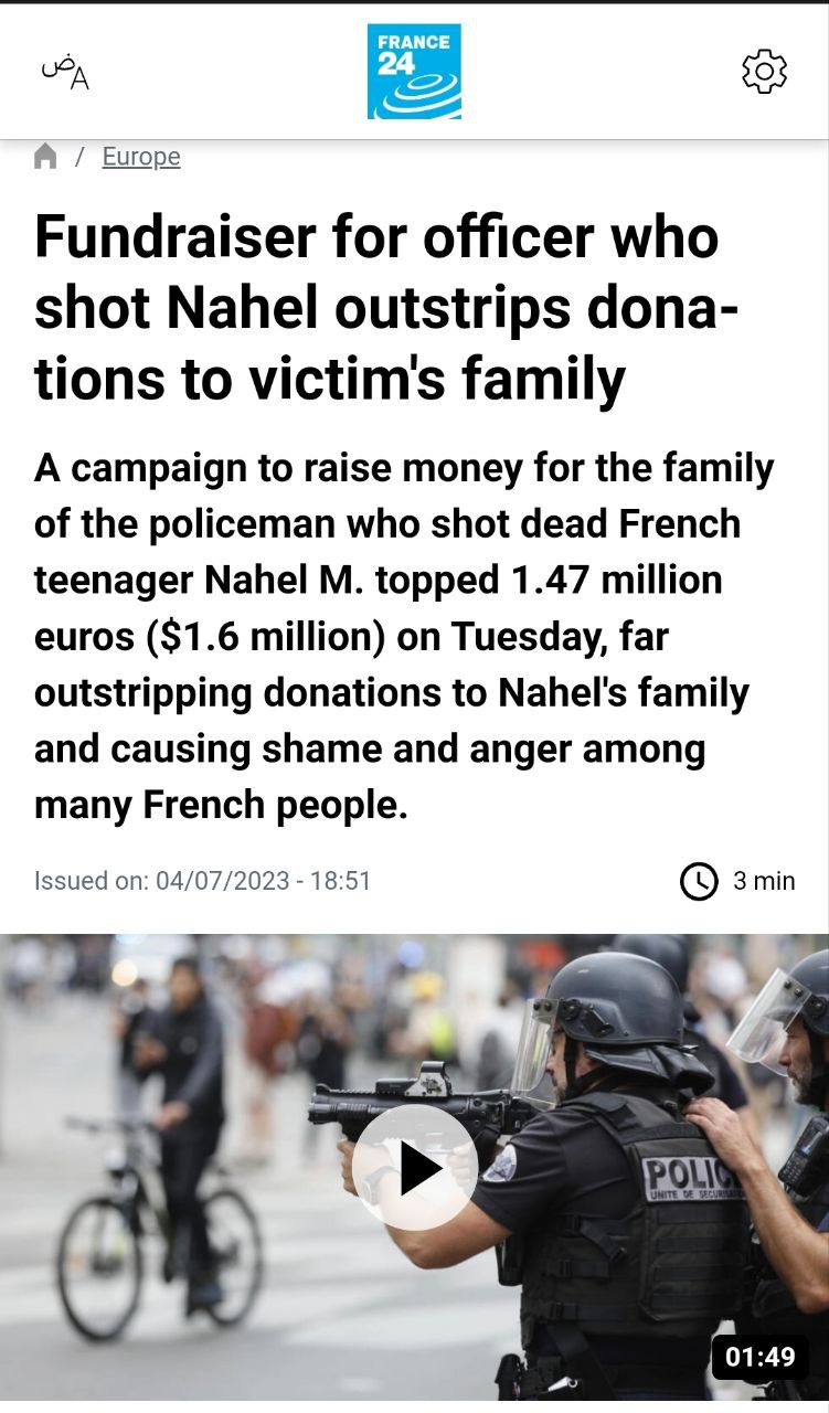 Напомним, из-за убийства Нантере полицией 17-летнего подростка, Францию сейчас сотрясают мощные протесты, основу которых составляют мигранты.