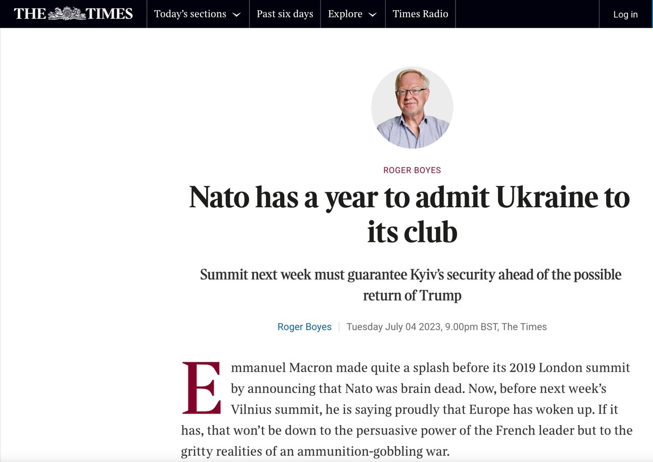 "У НАТО есть максимум год. Не только потому, что альянс планирует отпраздновать свое 75-летие в 2024 году с должной пышностью, но и потому, что вашингтонский саммит в следующем году может стать последним "ура" для Джо Байдена.