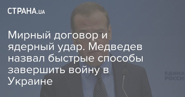 "Вообще всякая война, даже мировая война, может быть завершена очень быстро. Ну, либо если подписан мирный договор, либо если сделать то, что сделали американцы в 1945 году, когда они использовали свое ядерное оружие и разбомбили два японских города - Хиросиму и Нагасаки. Они действительно тогда свернули военную кампанию, цена - это жизнь почти 300 тысяч мирных граждан", - заявил Медведев.
