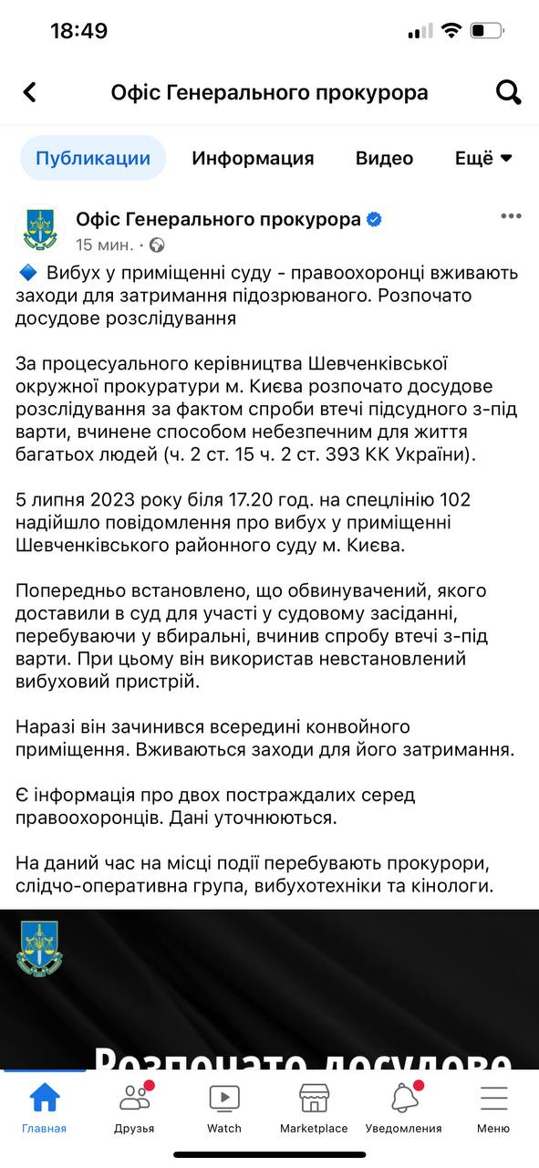 В Офисе генпрокурора рассказали подробности взрыва в Шевченковском суде. Иллюстративное фото: Из открытых источников