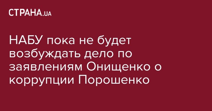 НАБУ пока не будет возбуждать дело по заявлениям Онищенко о коррупции Порошенко