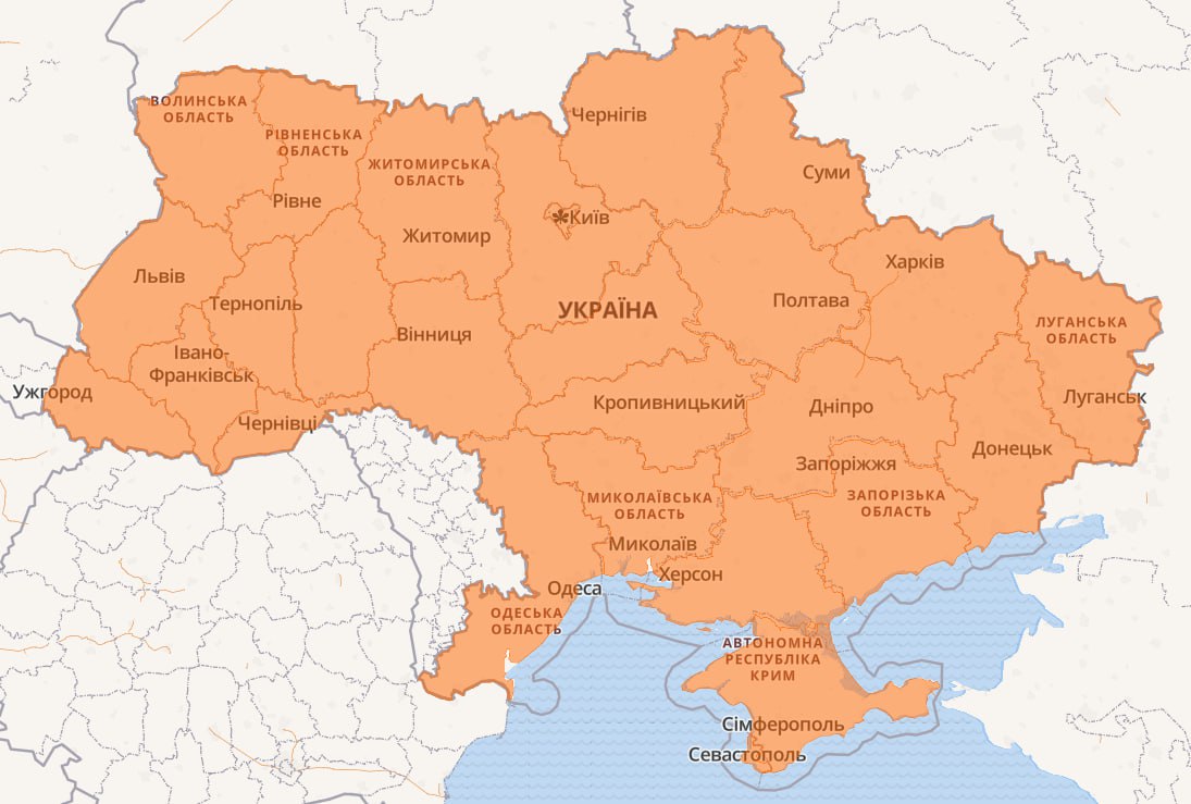 21.25 Воздушная тревога уже по всей стране. Объявлена из-за взлета истребителей МиГ-31К ПКС рф с аэродрома Саваслейка.