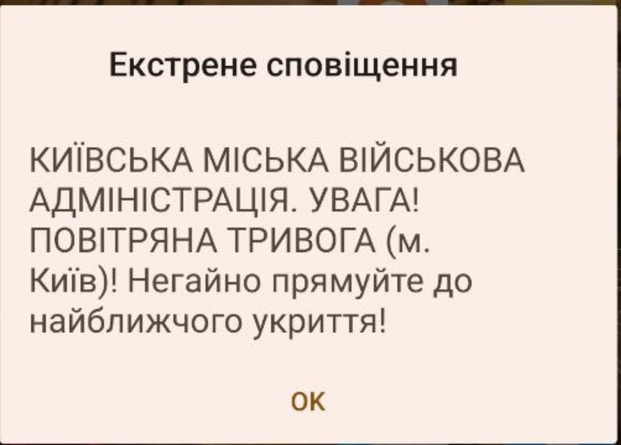 21.50 Киевлянам на телефоны массово приходят экстренные оповещения о тревоге с очень громким звуком.