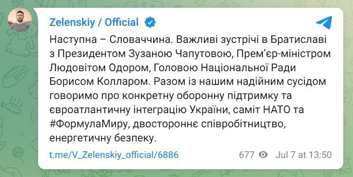 17.05 Зеленский уже в Словакии, где его встретила президент Зузана Чапутова.