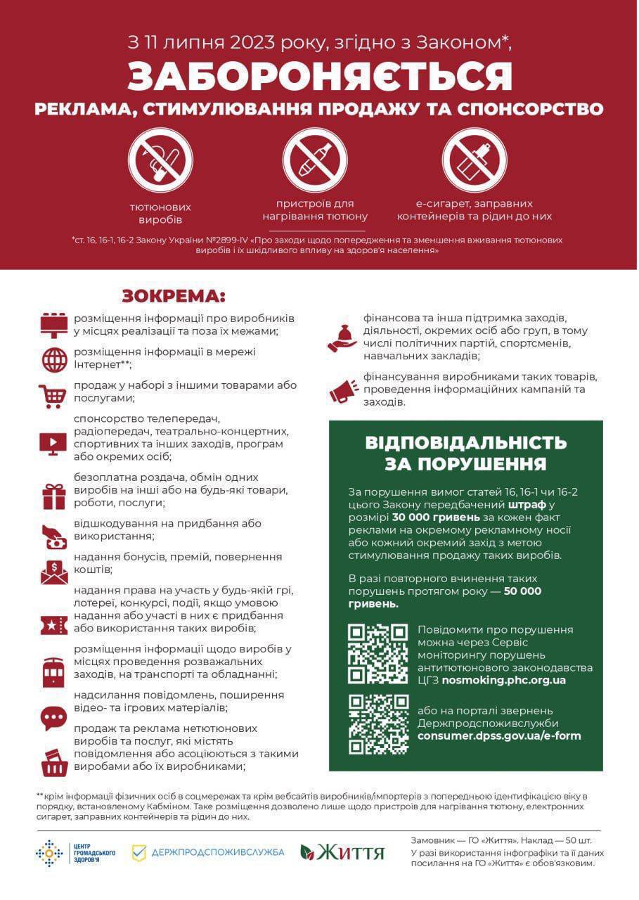 С завтрашнего дня в Украине вступает в силу новая часть запретов на продажу обычных и электронных сигарет, предусмотренных принятым еще в декабре 2021 года законом №1978-IX.