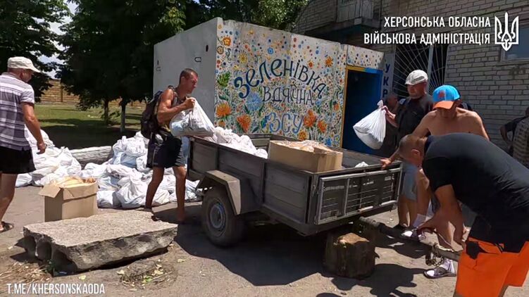 Выдача гуманитарной помощи в Херсоне. Иллюстративное фото - t.me/khersonskaODA
