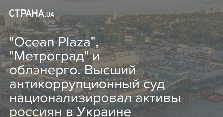 Высший антикоррупционный суд национализировал ТРЦ "Ocean Plaza" и "Метроград", отели Premier, часть облэнерго и другие активы россиян в Украине.