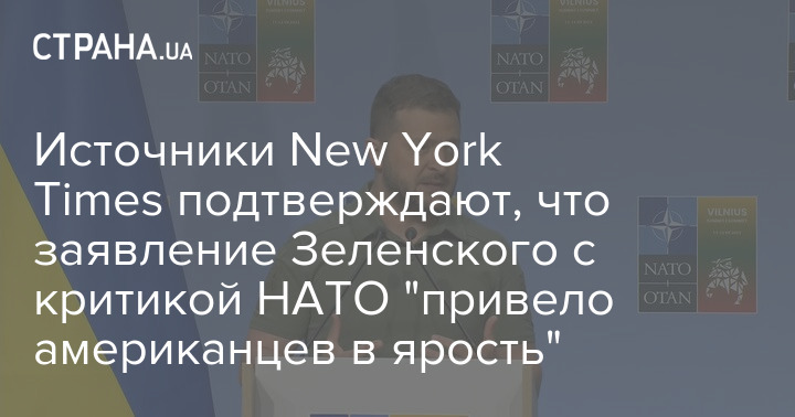 Источники New York Times подтверждают, что заявление Зеленского с критикой НАТО "привело американцев в ярость"