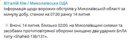 08.05 Ночью в Николаевской области сбили два "Шахеда".