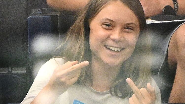 Шведская экоактивистка Грета Тунберг показала средний палец депутатам Европарламента.