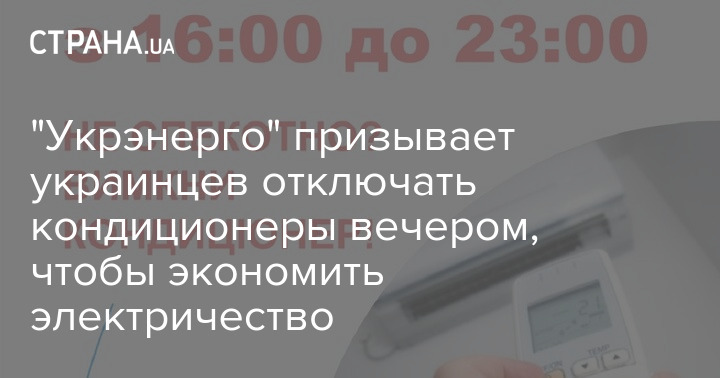 "Укрэнерго" призывает украинцев отключить кондиционеры после 16:00, чтобы снизить нагрузку на систему.