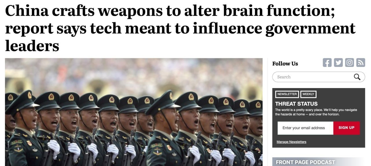 Американское издание опубликовало отчет, в котором говорится о создании специалистами китайской армии специального "нейроударного" оружия.