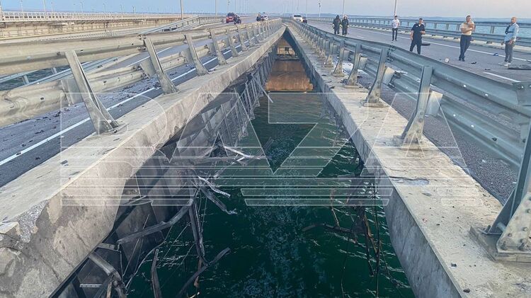 Крымский мост получил значительные повреждения в ходе ночной атаки. Фото: Telegram