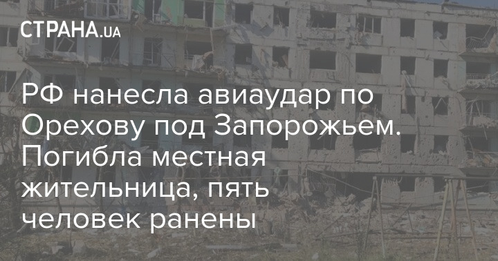 Россия нанесла авиаудар по жилому району прифронтового Орехова, со стороны которого наступают ВСУ на Запорожском направлении. Погибла местная жительница, еще пять человек получили ранения.