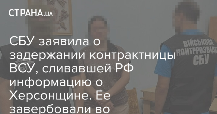 СБУ заявляет о задержании контрактницы ВСУ, которая сливала РФ данные об украинских беспилотниках, позициях ПВО и контрнаступательных операциях в Херсонской области.