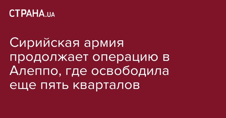 Сирийская армия продолжает операцию в Алеппо, где освободила еще пять кварталов