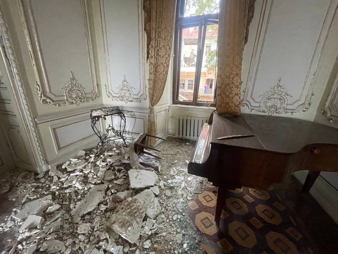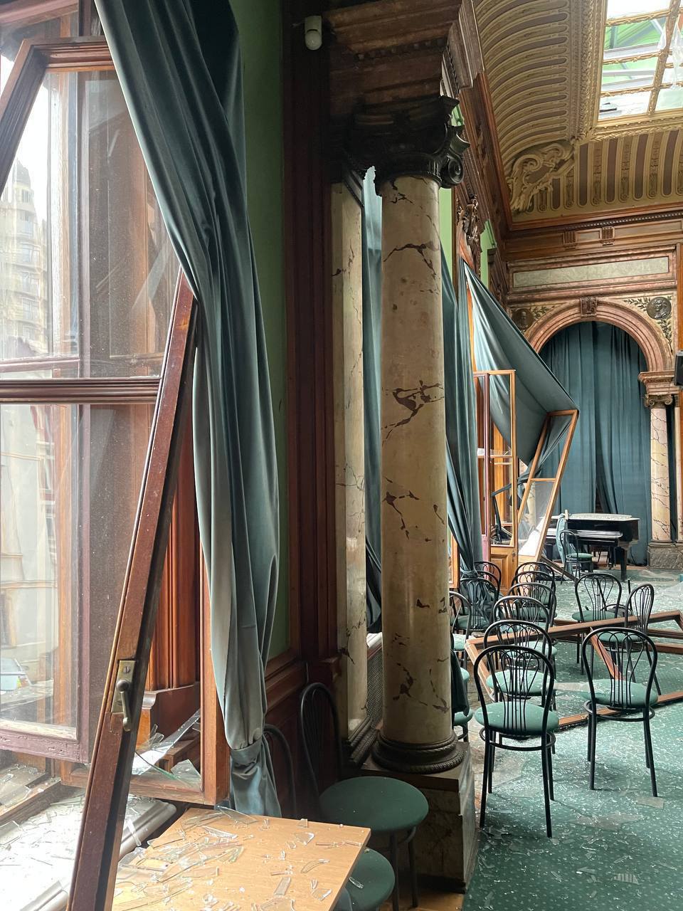 В сети появилось фото из Дома учёных - памятника архитектуры в центре Одессы, который пострадал во время российской ракетной атаки.