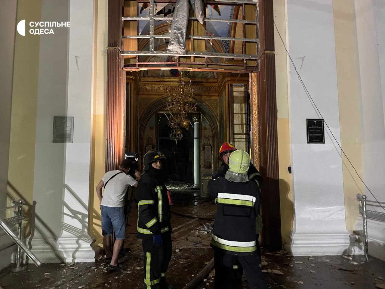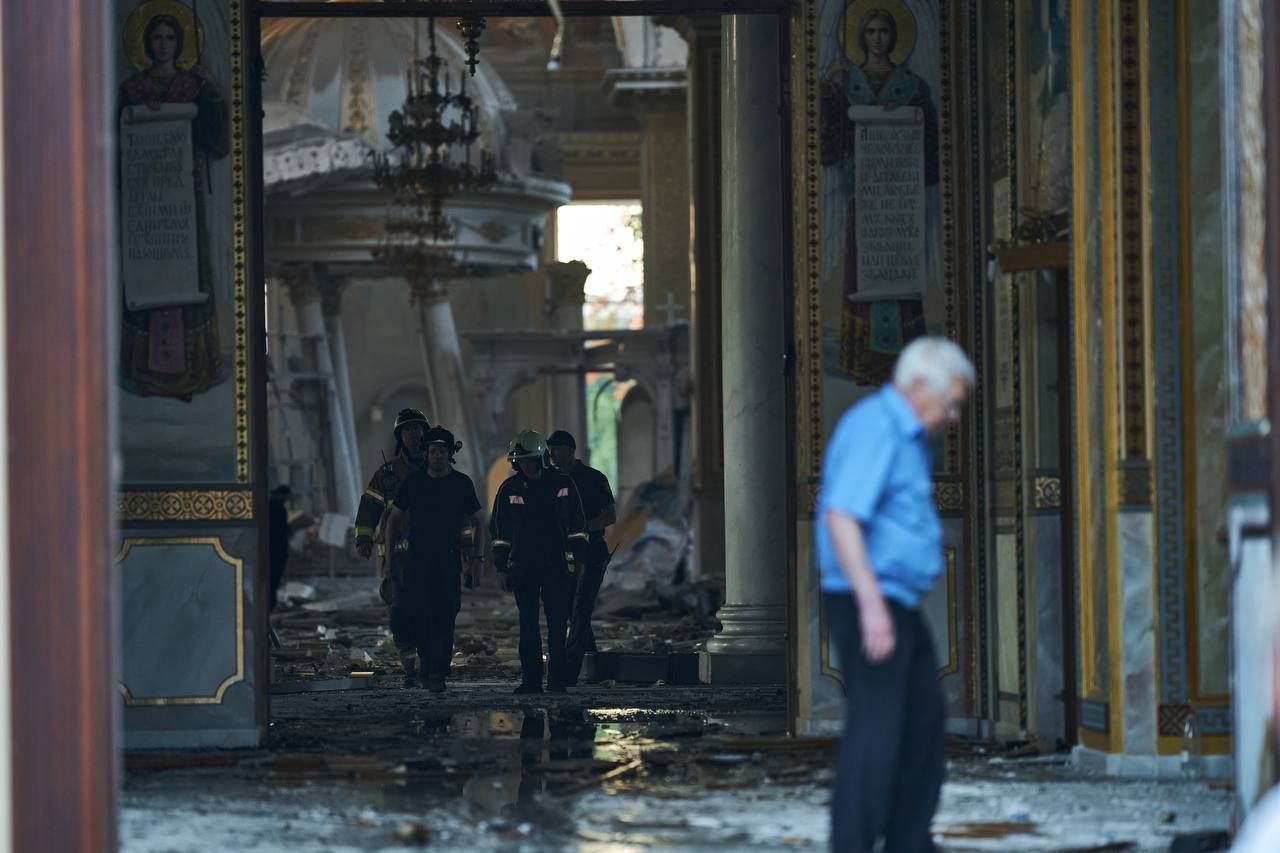 "Ночью, во время бомбардировки российскими войсками города Одессы произошло попадание непосредственно в алтарную часть кафедрального Преображенского собора. В это время в соборе находились люди, которые совершали в нем круглосуточную молитву. К счастью, никто из них не пострадал. Чудом уцелели святыни - чудотворные иконы и мощи, которые находились в храме. Само церковное здание получило очень сильные повреждения. Часть его, непосредственно алтарь - была разрушена полностью, вместе со святым Престолом", - сказал "Стране" председатель Синодального информационно-просветительского отдела Украинской православной церкви Митрополит Климент.
