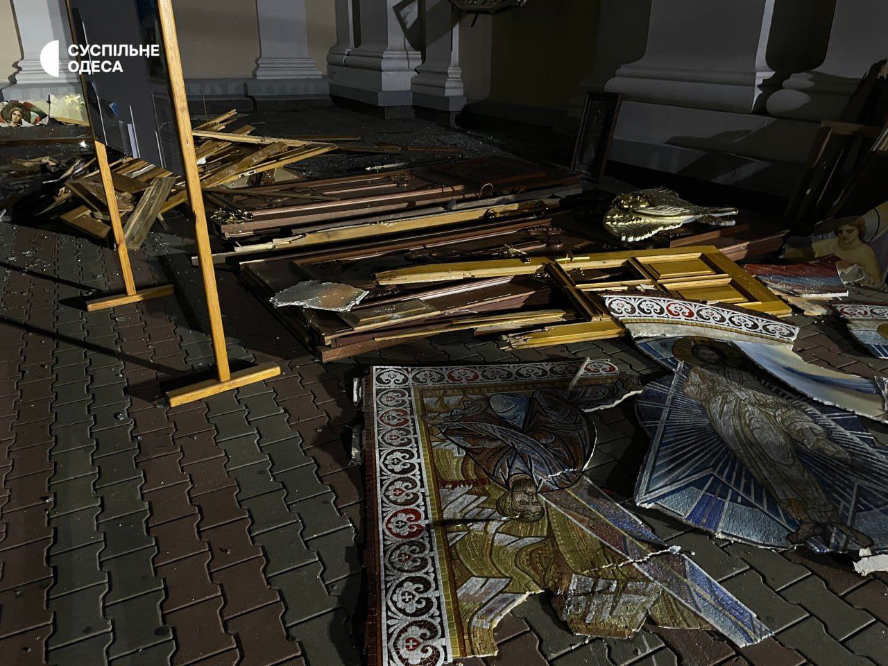 05:32 Ещё фото разрушений из Спасо-Преображенского собора Одессы.