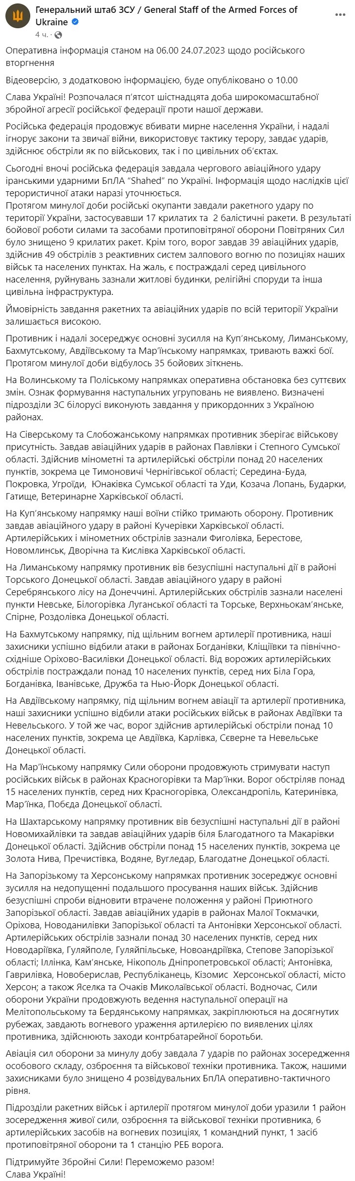 Война в Украине идет уже 516-й день. Мы следим за последними новостями и ключевыми событиями 24 июля 2023 года в онлайне.