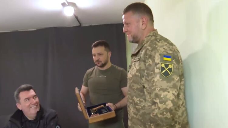 Главкома ВСУ Валерия Залужного Владимир Зеленский наградил именным огнестрельным оружием, а командующему Сухопутными войсками Александру Сырскому президент подарил картину, которая изображает подвиг украинских военных.