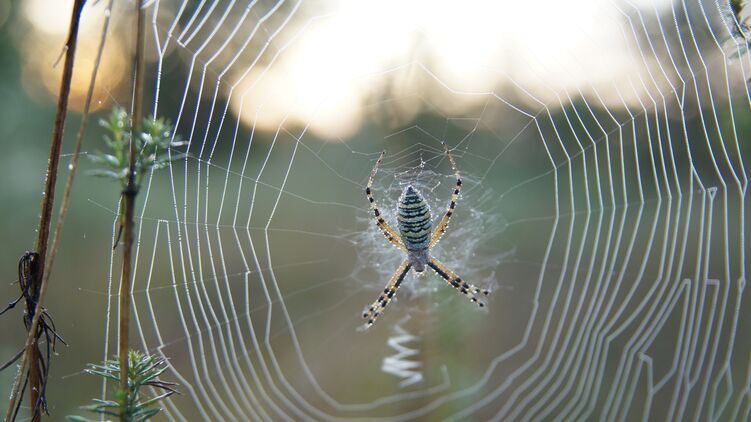 Чернобыльский радиационно-экологический биосферный заповедник показал фото паука-осы на паутине.