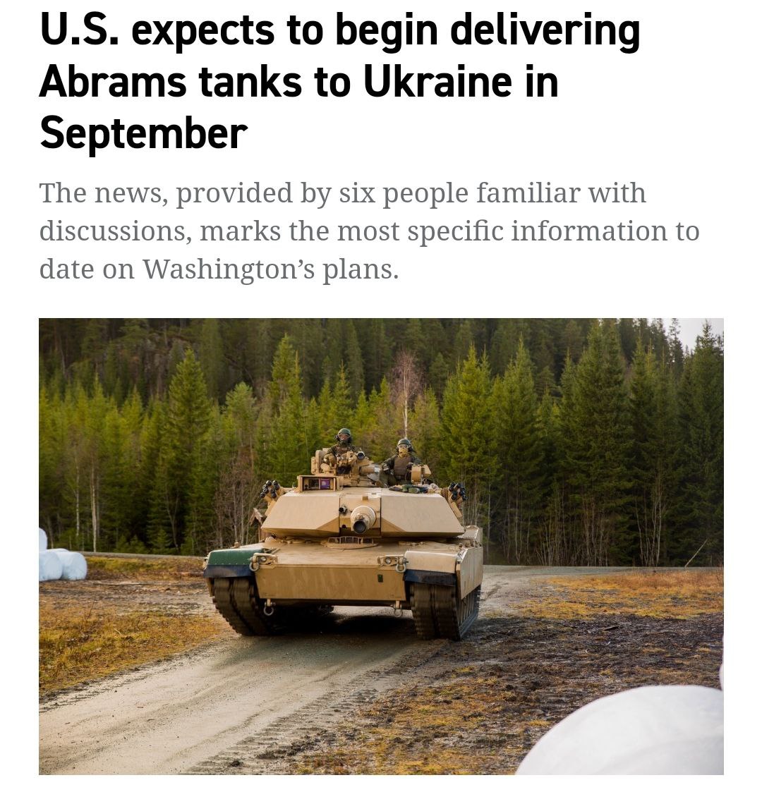 Они прибудут в сентябре, заявили газете источники, знакомые с вопросом. Ранее сроки были более расплывчатыми (заявлялось, что танки ожидаются осенью).
