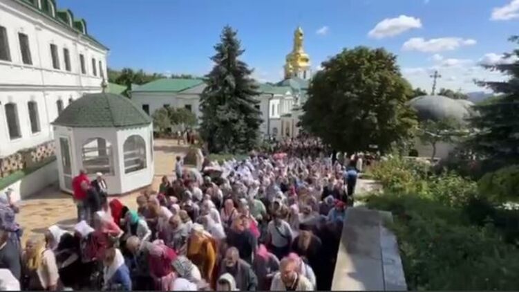 После произнесения молитвы, ход стартовал с территории Киево-Печерской лавры. На видео можно увидеть, что перед лаврой собралось много людей. В основном пожилого и среднего возраста. При этом среди собравшихся женщин было заметно больше, чем мужчин.