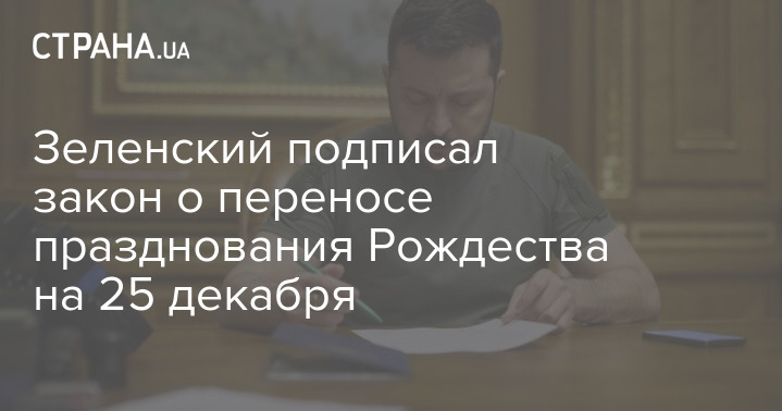 Президент Украины Владимир Зеленский подписал закон о переносе празднования Рождества на 25 декабря.