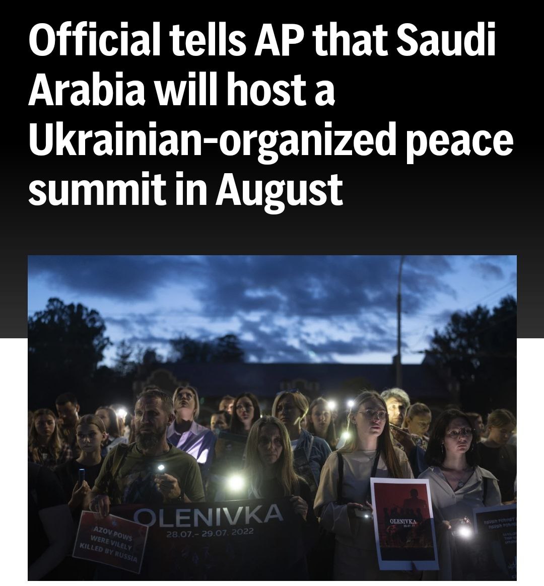 В начале августа в Саудовской Аравии пройдет организованный Украиной мирный саммит. Ожидается участие представителя Белого дома США.