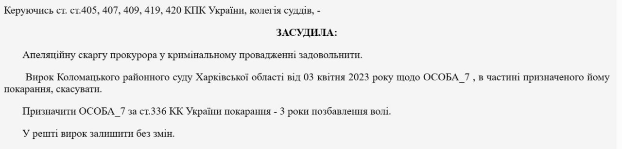 Аналогичное решение вынес Харьковский апелляционный суд в отношении жителя области, который уклонился от повестки, за что ранее был осужден по статье 336 УКУ, но освобожден с условным сроком 1 год.