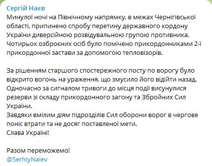 Ночью российские диверсанты попытались пересечь границу в Черниговской области.
