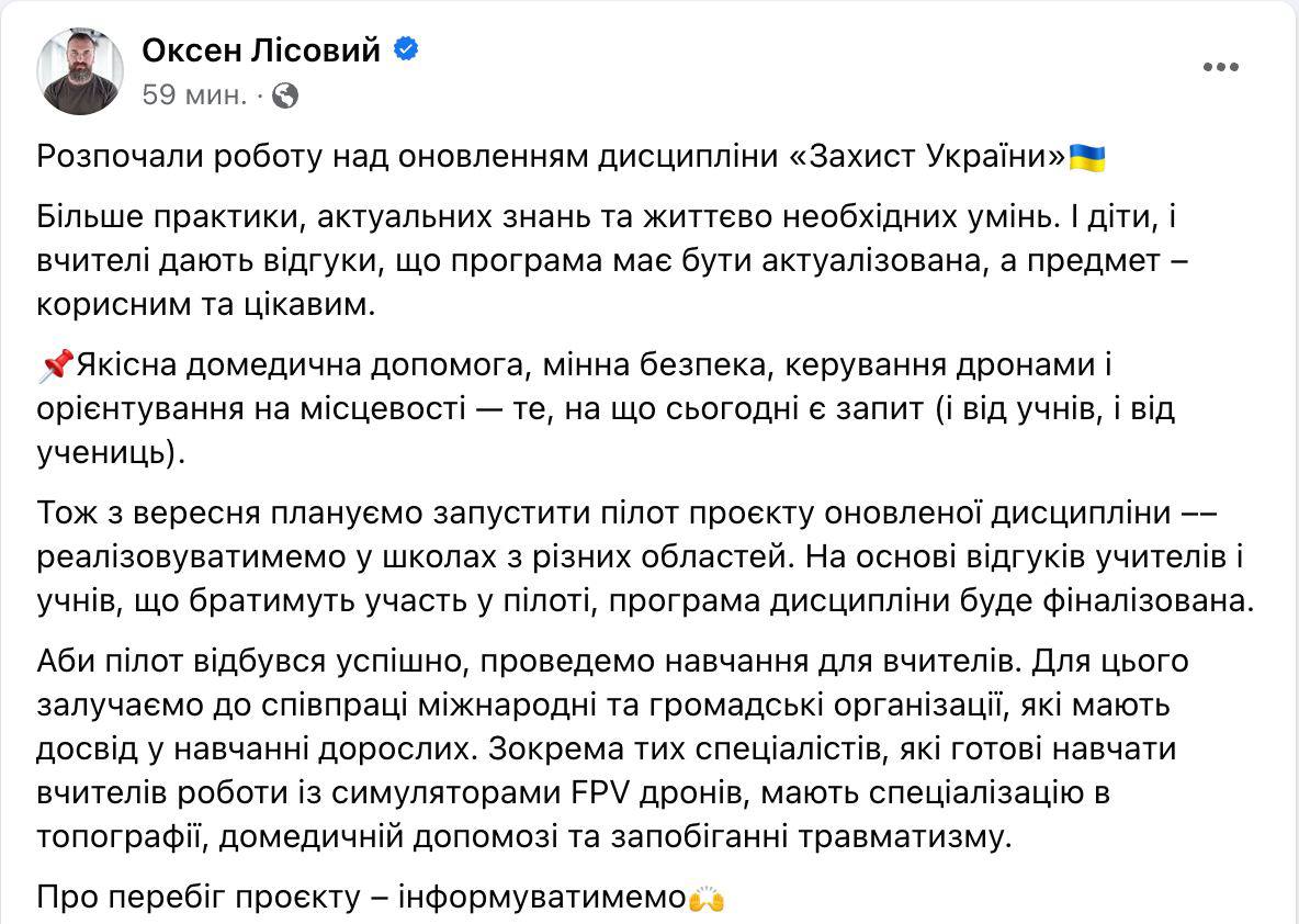 Об этом сообщает в Фейсбуке министр образования Оксен Лисовый.
