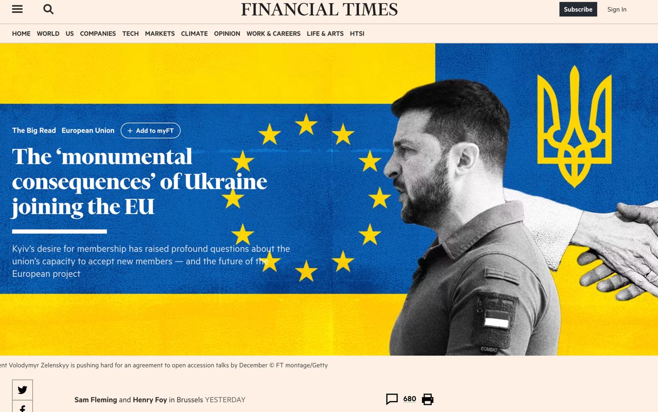 В Financial Times вышла большая статья о "монументальных последствиях" вступления Украины в ЕС.