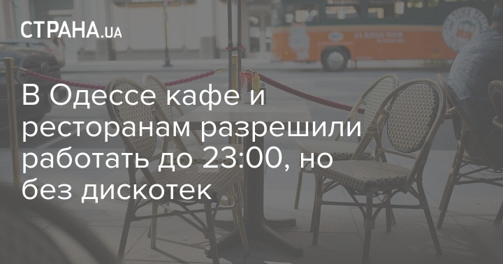 В Одессе кафе и ресторанам разрешили работать до 23:00. В отношении развлекательных мероприятий остаются прежние ограничения - дискотеки должны завершаться до 22:00.