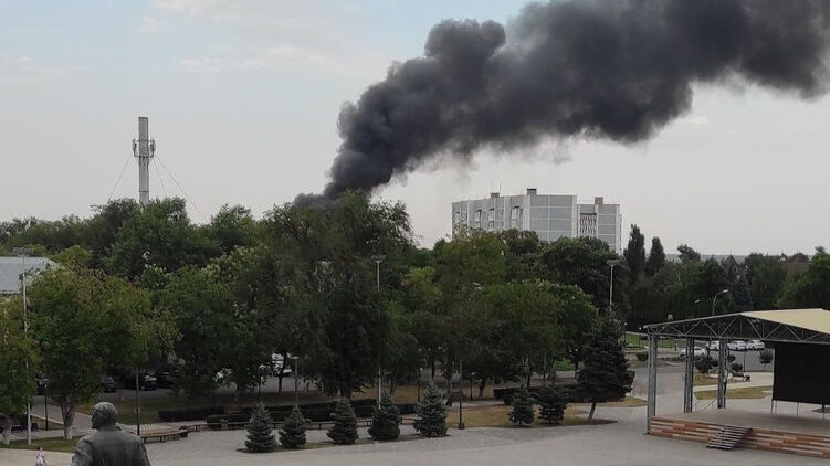На кадрах можно увидеть пылающее здание и сильный дым, а также спецтехнику. Огонь сильно повредил стены и крышу.