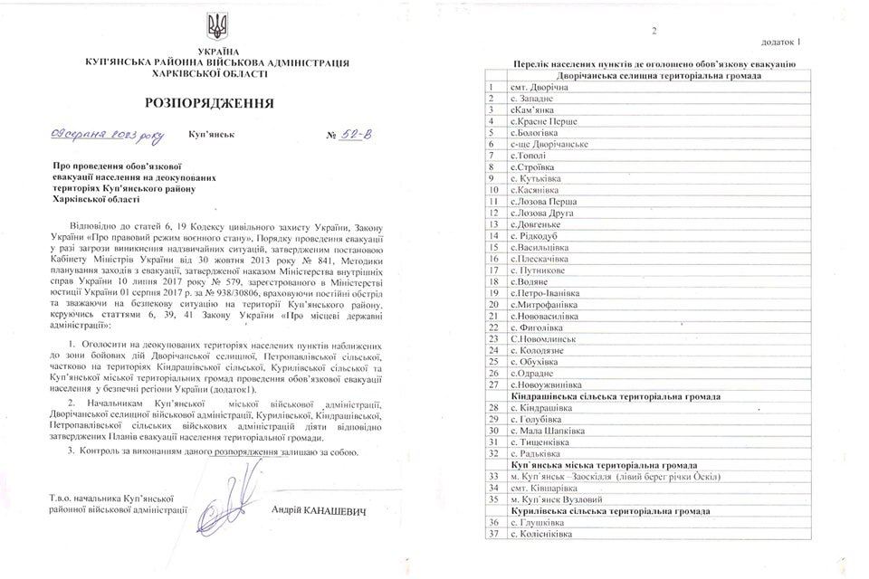 В прикрепленном документе указаны 37 населенных пунктов, откуда должны уехать люди.