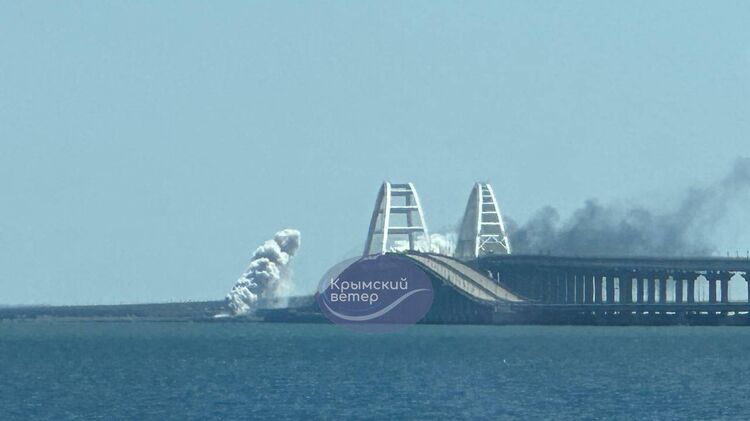 Тем временем "глава" Крыма Сергей Аксенов сообщает, что в районе Керченского пролива силами ПВО сбиты две ракеты. При этом, по его словам, сам Крымский мост не поврежден. А советник "главы Крыма" Крючков заявил, что дым на Крымском мосту — "дымовая завеса, поставленная экстренными службами".