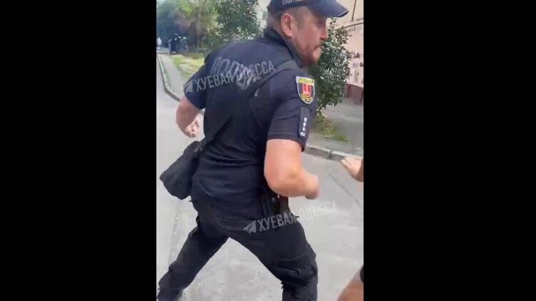 В Одессе полицейский отправил задержанного мужчину в нокаут после словесного конфликта на улице.