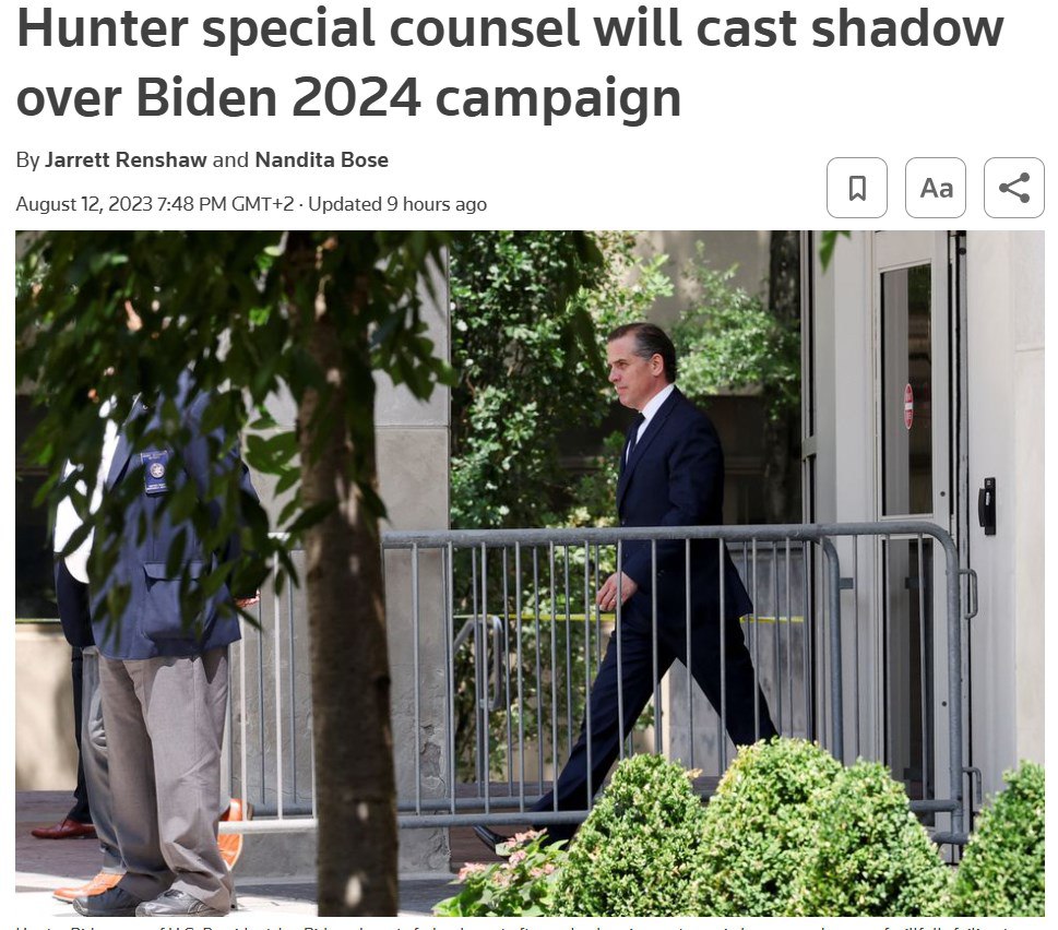 Теперь, как предполагает Reuters, этот судебный процесс создаст "беспрецедентное зрелище в истории США", которое описывается так: "сыну действующего президента предъявлены уголовные обвинения, пока его отец ведет кампанию за переизбрание - вероятно, против республиканца Дональда Трампа, которому предстоит как минимум три предстоящих уголовных процесса".