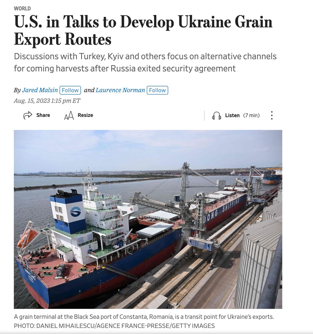 09.20 США ведут переговоры с Турцией, Украиной и ее европейскими соседями о расширении альтернативных маршрутов для экспорта зерна, пишет The Wall Street Journal со ссылкой на источники.